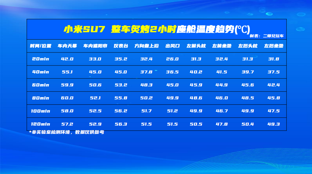 而在暴晒两个小时之后,SU7整体座舱温度最低,MG4次之,而海豚车内温度最高。这样的温度实测数据排名,也证明了三款车的玻璃隔热性能。