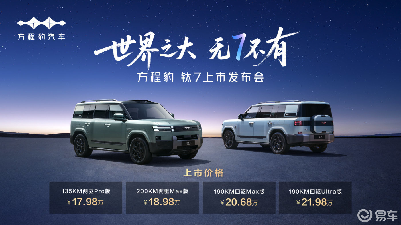 17.98 万起!方程豹钛7上市:3.6 万权益直接送!