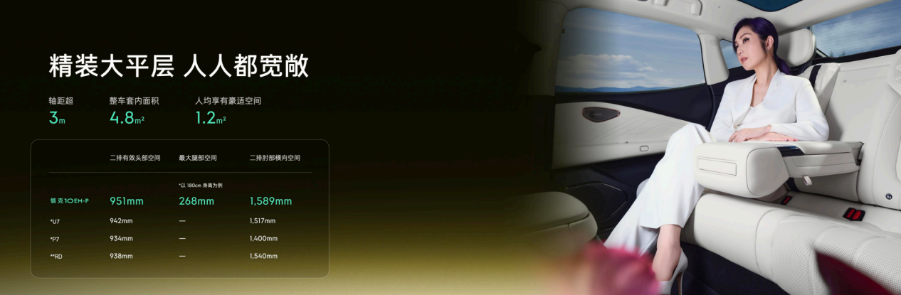 不只是设计上的进阶豪华,作为一款高端电混轿车,领克10 EM-P深谙用户对豪华品质的追求,以“精装大平层”理念打造旗舰级座舱体验,啥都有啥都好,人人舒享。