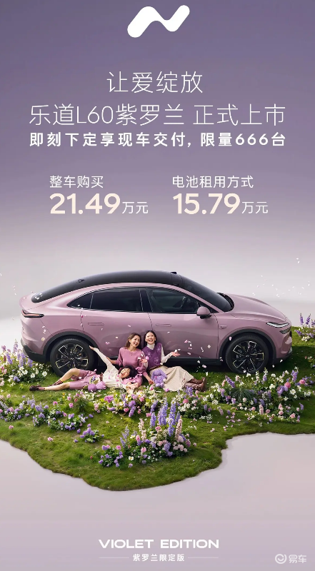 内饰方面,新车延续在售车型的内饰布局,全新的紫罗兰主题营造出时尚氛围,前后排座椅采用不同的双拼配色,这也是乐道首次推出错位双拼内饰主题。