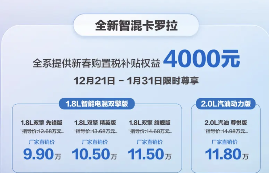 厂家直销价9.9万起:一汽丰田全新智混卡罗拉焕新上市
