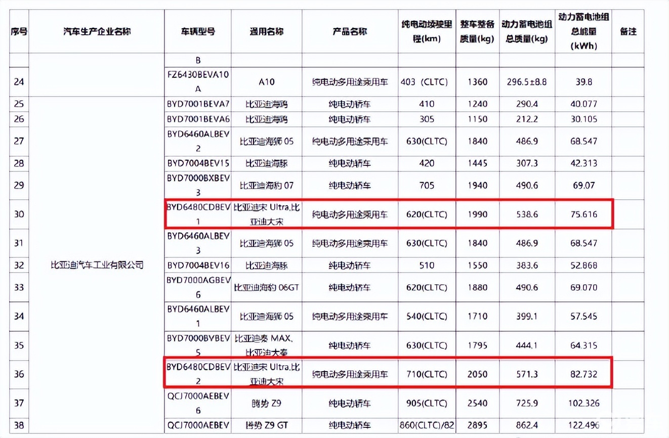 宋Ultra EV搭载单电机后驱系统,提供高、低两种功率版本,最大功率分别为240千瓦和270千瓦,最高车速均为210公里/小时。新车将提供75.616千瓦时和82.732千瓦时磷酸铁锂电池包,对应的CLTC续航里程分别为620公里和710公里。