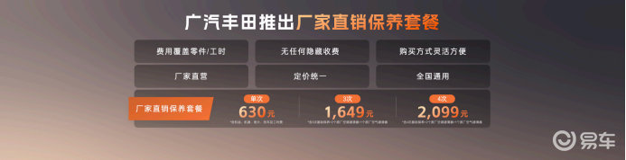 直面长期“养车难、养车贵”的用户痛点,广汽丰田推出了“厂家直销保养套餐”,将“服务从不套路”的承诺落到实处。用户仅需花费2099元,即可购买4次原厂保养,价格低至市场价的七五折,更可以按保养所需自由选择单次购买,且费用完全覆盖零件与工时,无任何隐藏收费。