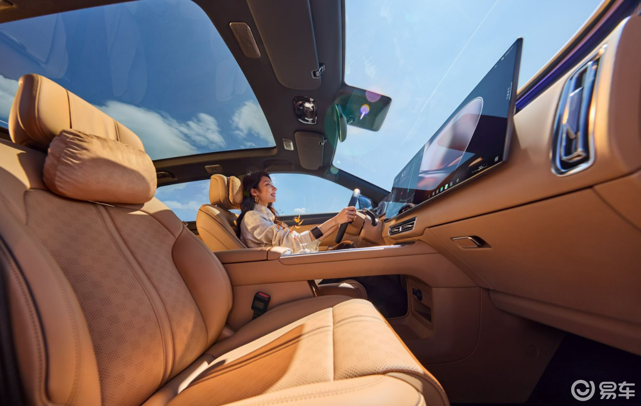 智能座舱同样是主流旗舰水准。车内搭载高通骁龙8295P芯片,运行流畅度有保证,车机界面、交互设计比较人性化,支持眼球追踪、多场景智能控制,常用娱乐、导航、办公生态也比较齐全,日常使用便捷度很高。