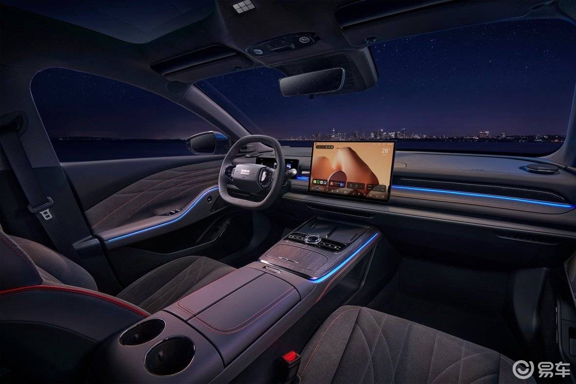 内饰方面,提供12.9英寸悬浮中控屏、10.25英寸全液晶仪表、三辐式方向盘、30色氛围灯。内置高通8155芯片,科大讯飞语音交互系统及融合Deepseek、豆包和自研模型的AI大模型矩阵。