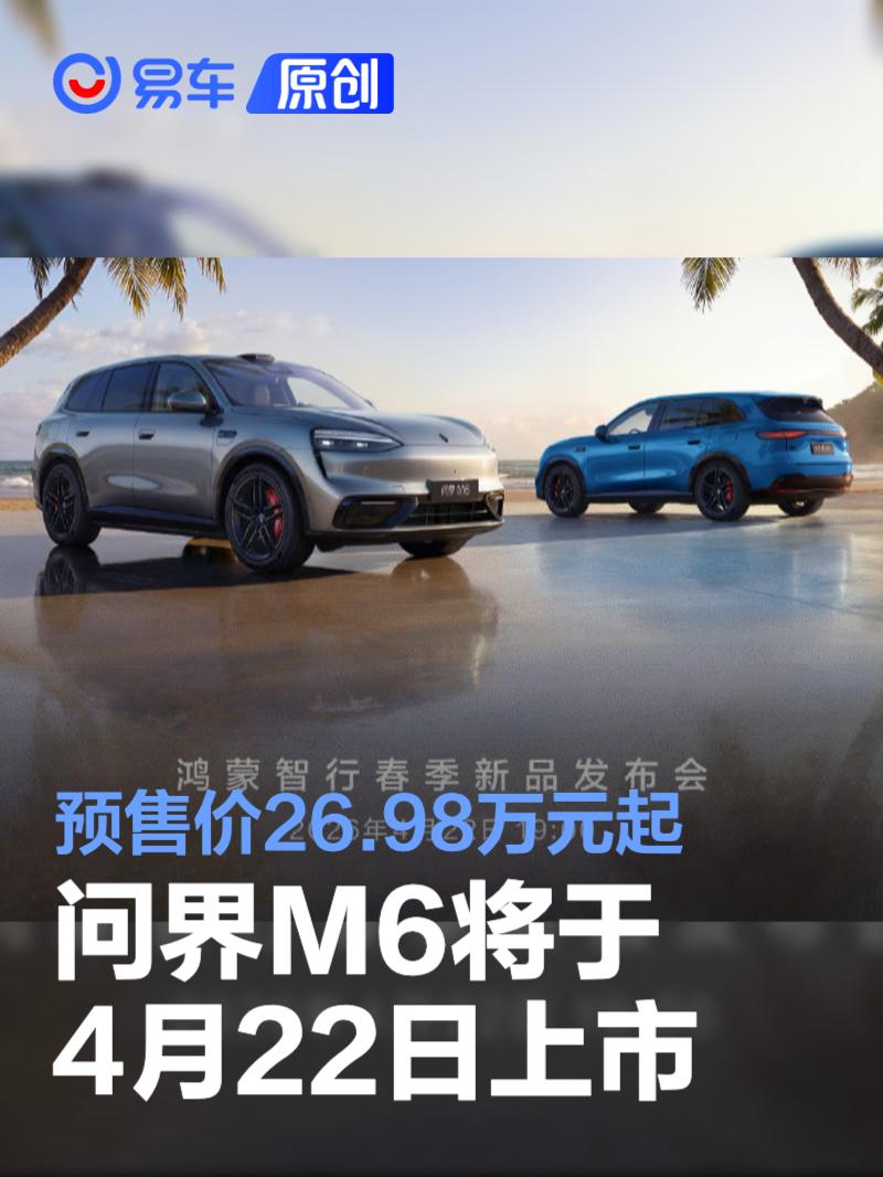 问界M6将于4月22日正式上市 预售价26.98万元起