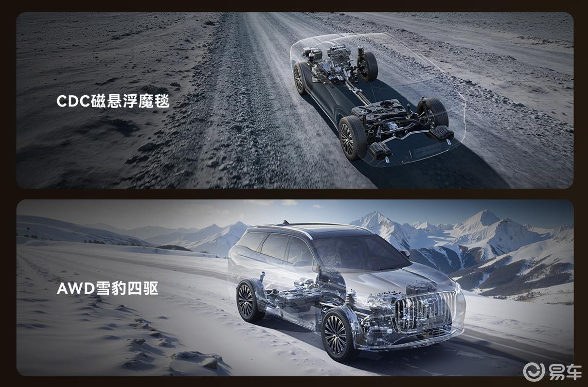 CDC磁悬浮魔毯底盘堪称“公路高铁”级配置,实现毫秒级智能响应,每秒上千次调节减震力度,真正做到起步不抬头、刹车不点头、转弯不侧倾、颠簸不洒水,搭配双液压悬置,震动降幅可达30%以上,带来媲美豪华品牌的平稳舒适。此外,AWD雪豹四驱系统以100毫秒超快响应速度,性能媲美Quattro,让普通消费者也能轻松享受高端四驱体验。