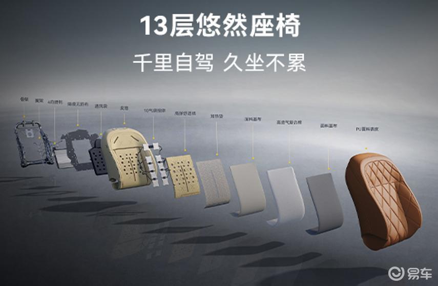 舒适配置方面,新车全系标配13层悠然座椅,采用奔驰S级绗缝工艺与40D高密度舒适性海绵,50%高回弹率搭配15mm舒适性海绵,前排座椅加热、通风、10点按摩(5种模式)一应俱全,较四五十万级豪车常用的20D海绵质感更优,经代言人于适盲测验证,久坐不累,堪称“移动云端头等舱”。同级唯一的女王副驾2.0,与洲际航班头等舱级腿托坐垫同宽,一键舒躺,进一步提升乘坐奢享感。