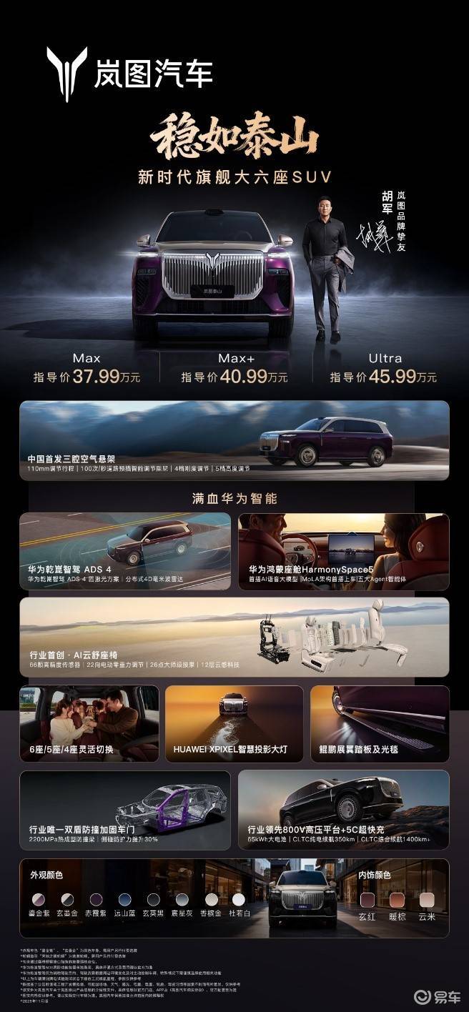 37.99万元起,大六座旗舰SUV岚图泰山上市